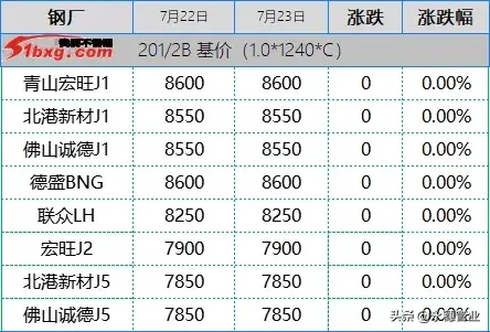 今日,青山代理持平報8月資源:鼎信J2-7700元/噸;J3-8000元/噸;J1-8400元/噸;J4-9000元/噸。后期,青山鋼廠盤價下調100元/噸與代理報價一致。市場其他產地報價:鑫峰J3、金海J3、中金J5、華樂J3A含稅7680-7750元/噸。北港新材J5、寶鋼D4、聯眾J2、永達J3E四、五尺含稅7700元/噸左右。