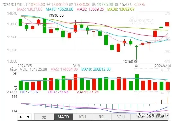 在清明假期中,倫鎳上漲幅度沖接近800,節后的第一日開盤維持節前上漲的節奏,雖然在午后都回跌,但尾盤收盤回歸上漲,整體上保持上漲。