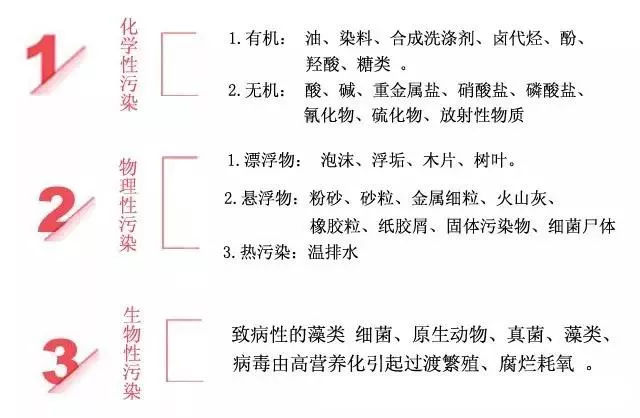 2、化學污染:當水體受到未經凈化處理的各種工業廢水、廢渣的污染并達到一定濃度時,飲用或食用了這種水或含有這種水的食物時,可導致各種急、慢性中毒,甚至引起癌癥。